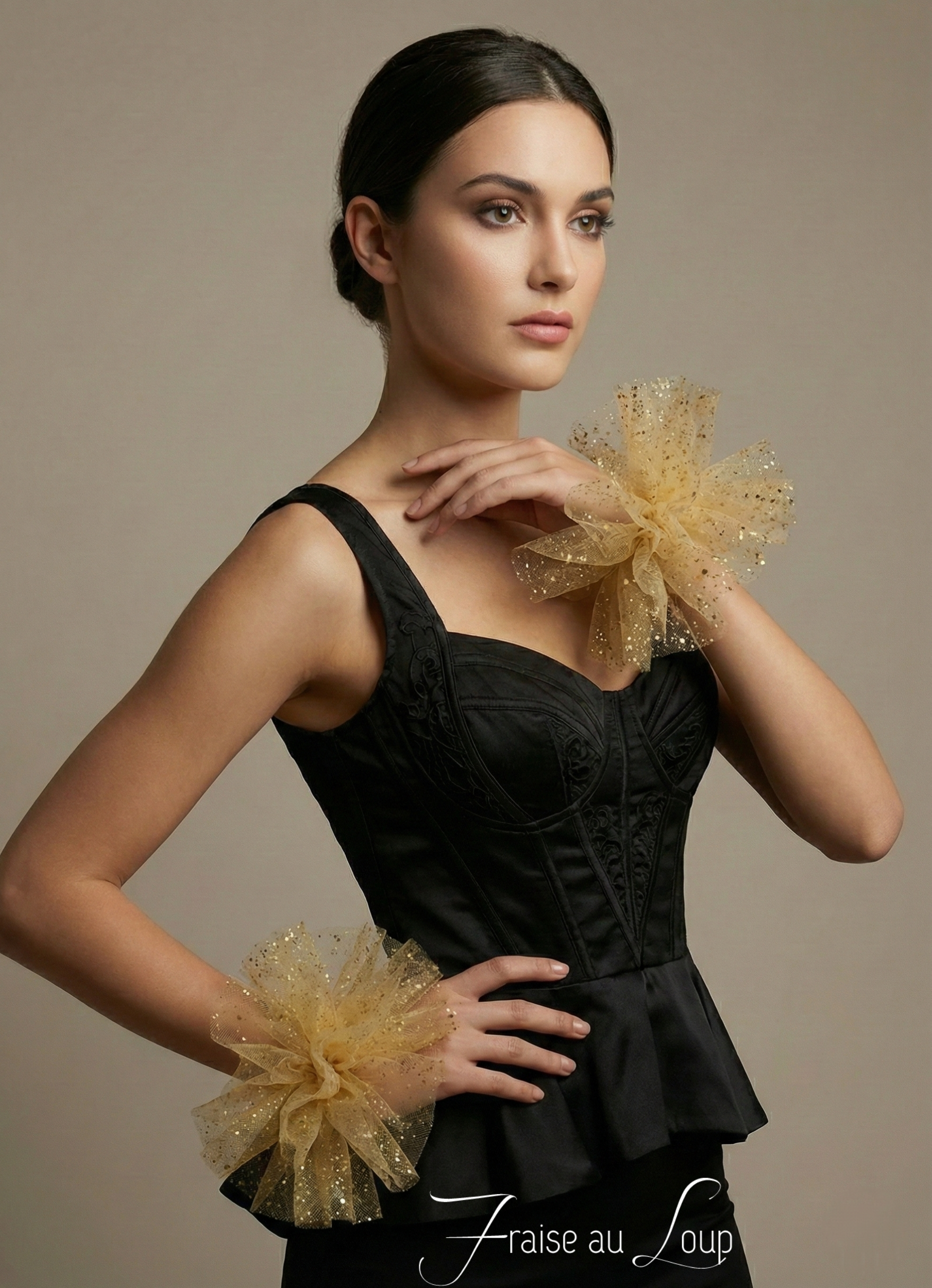 Poignets réalisés en tulle doré pailleté